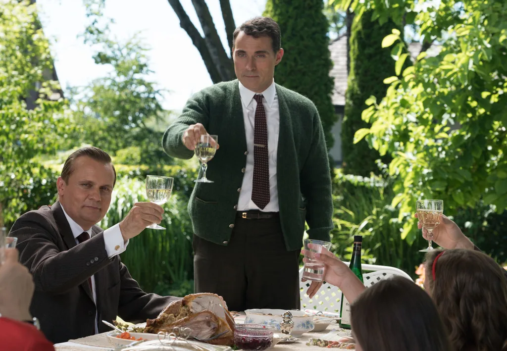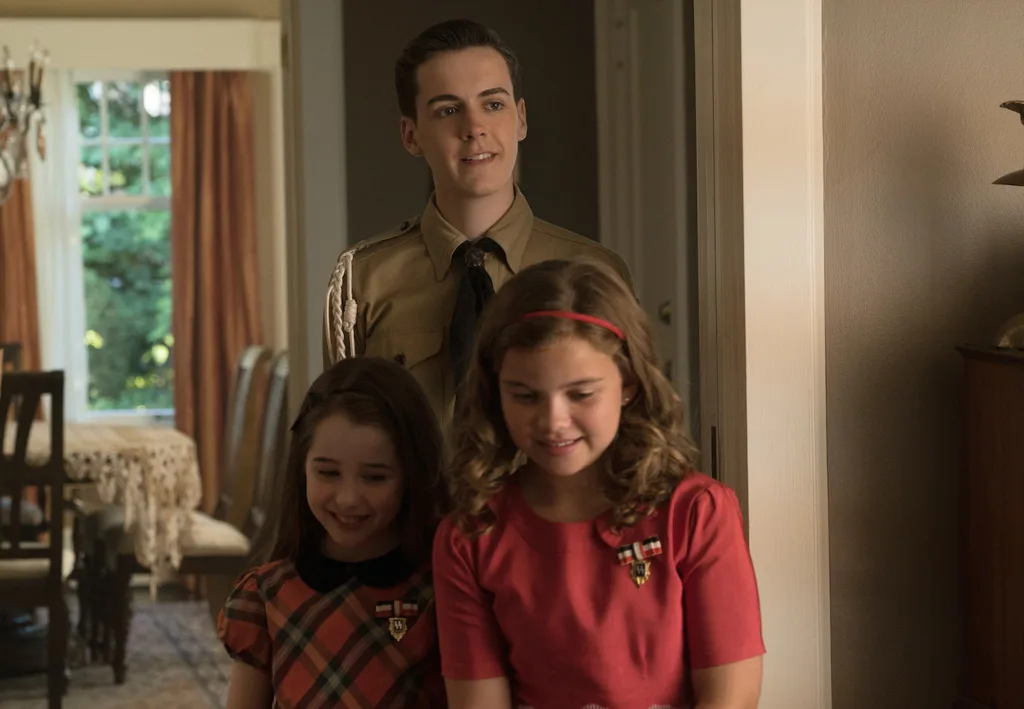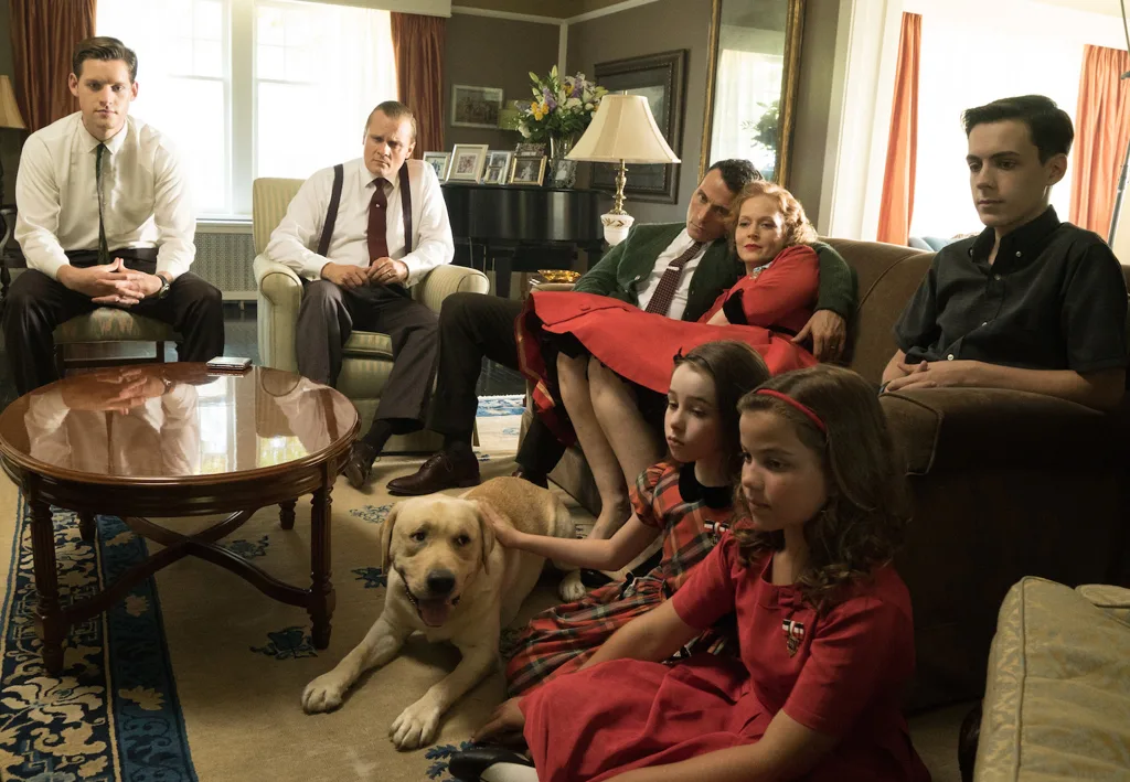 We were inspired by the mid-1950s Sears catalog, period men’s advertisements and street photography to create a “Father Knows Best” Smith at home in Long Island with the wife and kids. The friendly cardigans and slacks did the trick, but I did purposefully inject a Germanic flair into his off-duty palette and style to make sure we didn’t lose site of his Nazi allegiance even at his most approachable.”