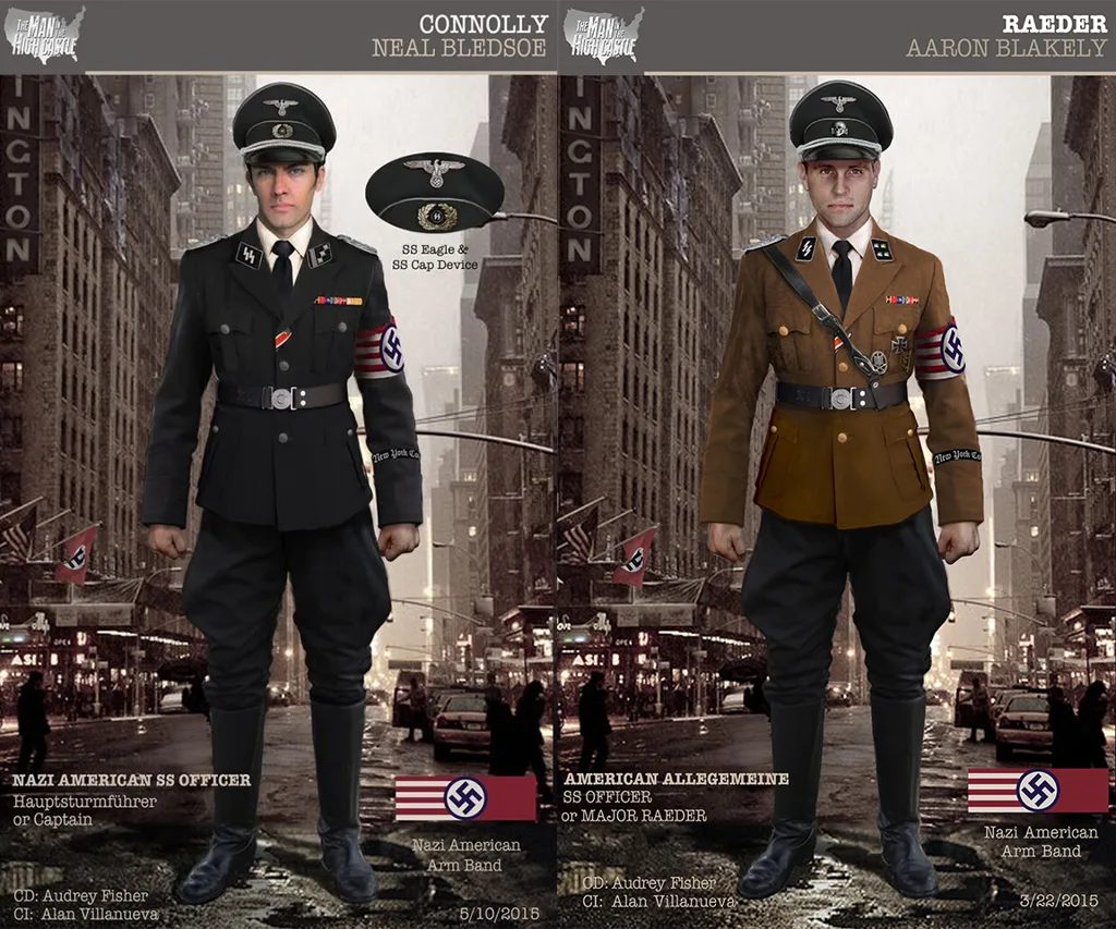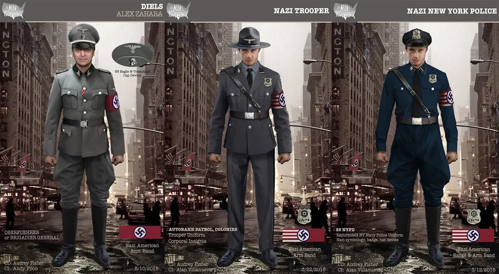 AF: “Learning about the history of the Nazi uniform, and all the insignia, was a sobering and intense journey. During the pilot I had the help of several experts from costumes houses Western, Eastern and Motion Picture, and then for the series we gained a dedicated military historian, Peter Czink. It was during the series that we had the support to fully explore and create dedicated symbology for our alternate MITHC world, spring-boarding from a MITHC alternate history constructed by Frank, Dan and the writers, in the form of insignia, medals and ribbons.