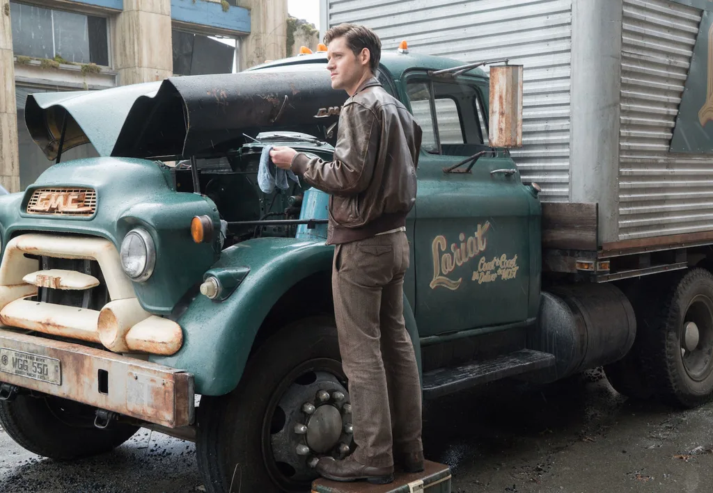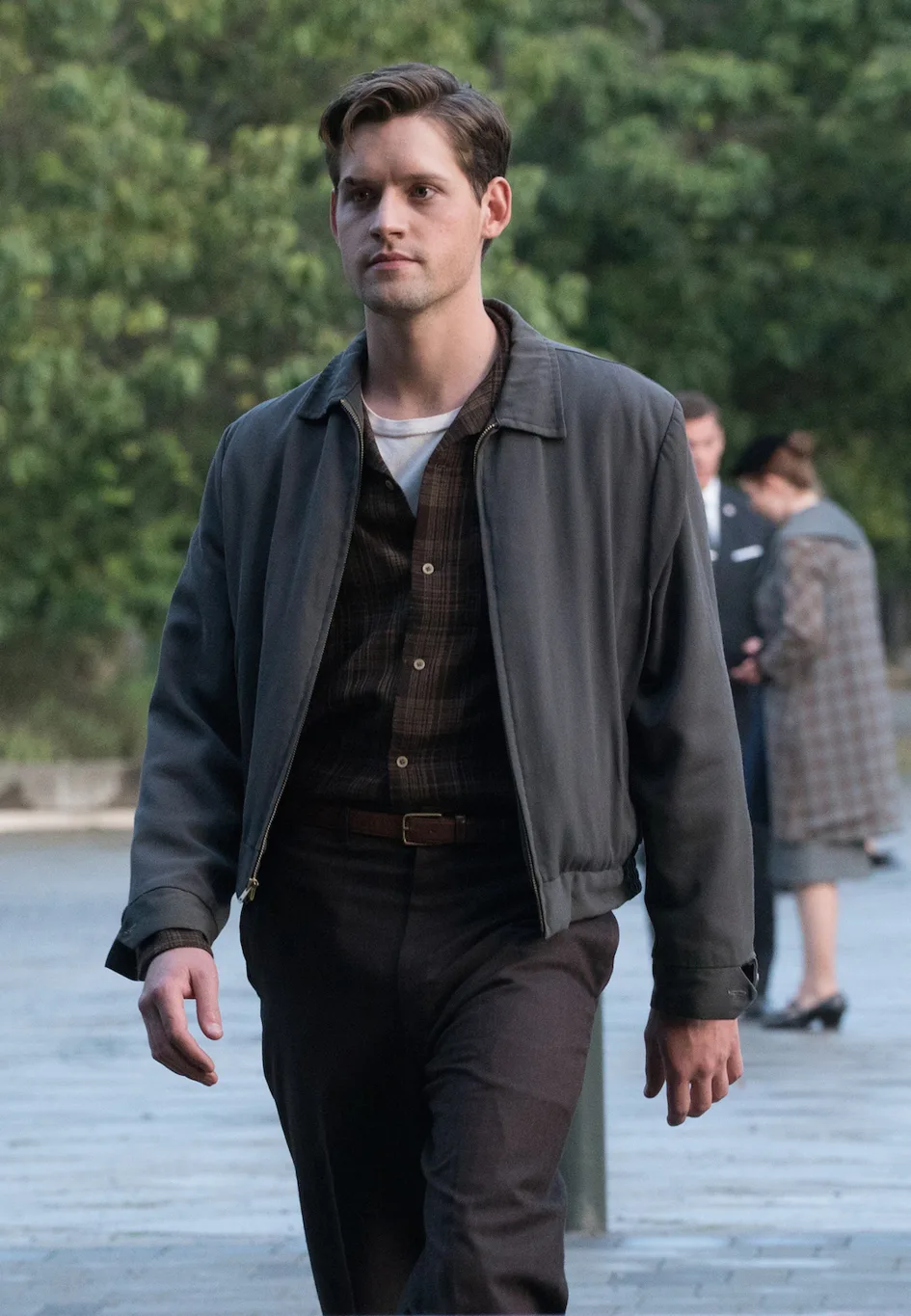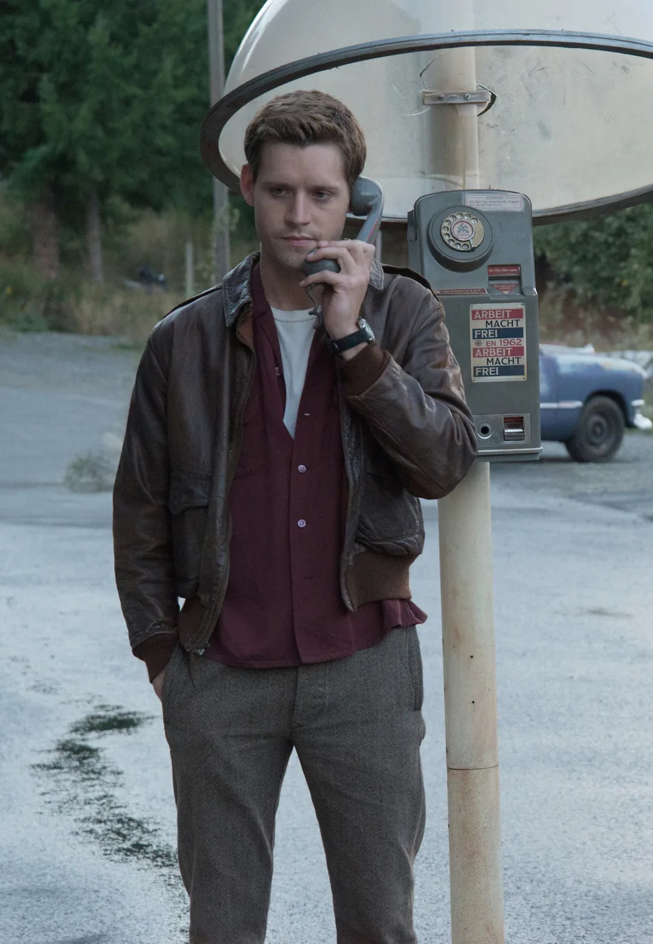 AF: “Joe Blake was playing a duplicitous game from the very beginning, which the viewer only learns in the final moments of the pilot. My goal was to continue to have him be a regular ‘Joe,’ wearing simple, masculine clothes that both signal that normality and offset his double-agent reality. His brown leather bomber jacket was an especially strong choice for a double agent; in MITHC reality, wearing such a clear symbol of defeated WWII America would certainly be considered inflammatory, but in his case it worked as symbol of rebellion, and he used that jacket to sell himself to the underground in the start of the show.