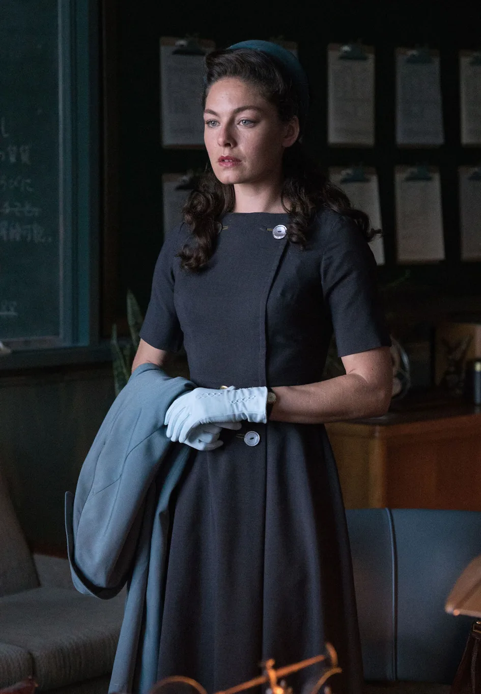 Audrey Fisher: “As always, it’s just a fact: my guiding force was our scripts, plus the warp of Philip K. Dick’s eponymous novel, then the weft of world history. The conversation about specifics started with Frank Spotnitz, series creator, and David Semel, the director of our pilot. And then the discussion got even more richly intense as we continued with producing director Dan Percival when prepping Season 1. I dove into research before my interview for the pilot, realizing how much I had yet to learn in order to be a part of building this world.